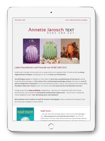 „Mein wohl persönlichster Newsletter“, Dezember 24
